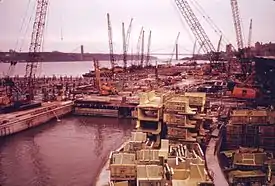 The park was built over the North River Wastewater Treatment Plant, which processes 125 million US gallons (470,000 m3) of wastewater every day during dry weather, and is designed to handle up to 340 million US gallons (1,300,000 m3) a day when the weather is wet. In order to minimize odors emitted by the plant, dedicated odor-control facilities have been installed at the plant, including $55 million in recent upgrades.[11] The plant sits on 2,300 caissons pinned into bedrock up to 230 feet (70 m) beneath the river. Construction of the foundation was completed in 1978, and the wastewater treatment facilities were constructed in two phases between 1986 and 1991.[11]
