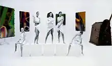 The band portraying marble statues in the music video for "Rivers of Joy"[1]