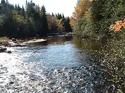 - 5.5 kilometres (3.4 mi) to the south in a deep valley by collecting the discharge (coming from the north) from Lac à la Loutre and by cutting the route 175 (route Antonio-Talbot), to the confluence of Noire River (coming from the northwest);