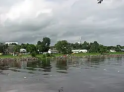 • 16.2 kilometres (10.1 mi) (or 7.8 kilometres (4.8 mi) in a direct line) towards the west, up to the limit of the village municipality of Leclercville;