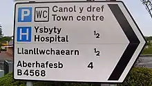 Road signs in Wales follow the same design principles as those in other parts of the United Kingdom. All modern signs feature both Welsh- and English-language wording, with Welsh first signage present in most areas of Wales and mandated for all new signs, but some English first signage remains from when it was legally allowed before 2016.