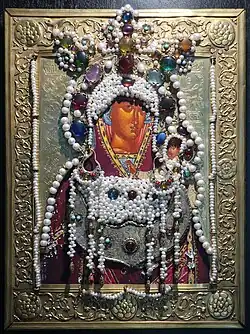 ![]() Icon decorated with pearls and gemstones on display at the museum | |