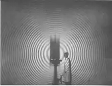 Alongside this research work in his own institute, Pohl collaborated with his scientific colleagues in a variety of ways. With the zoologist Alfred Kühn, he investigated the color perception of bees;[15] for the chemist Adolf Windaus, he applied optical spectroscopy to the separation of Ergosterol from Cholesterol.[16] He helped the archeologist Kurt Müller to photograph antique vases without disturbing highlights.[17] He gave active support to his student Hans Joachim Pabst von Ohain when the latter began the first experiments on jet propulsion following completion of his doctoral thesis, in the Physics Institute but privately financed.[18]