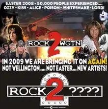 The Rock2Wgtn Festival was held Easter 2008. The headliners were Kiss[1] and Ozzy Osbourne. The other bands to play were Whitesnake,[2] Lordi, Alice Cooper,[3] and Poison.[4]
