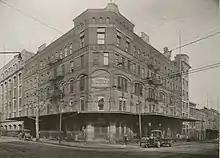 Rockwood & Company, manufacturers of chocolate products, established a factory in Brooklyn in 1910 in block 1874 bounded by Flushing Avenue on the north, Park Avenue on the south, Waverley Avenue on the west and Washington Avenue on the east. The main factory was located on the Park Avenue frontage and the company gradually took over the rest of the block, incorporating existing structures built for the Van Glahn Brothers grocery wholesalers.[1] By 1919 the site's shipping department, handling incoming raw materials and outgoing manufactured products, was located towards the north, Flushing Avenue, end of the block.[2]
