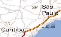 ![]() Map of the itinerary of Régis Bittencourt Highway (in red and yellow). | |