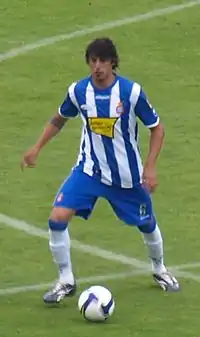 For the 2008–09 campaign, Martínez signed with Spain's RCD Espanyol.[1] On 13 December 2008 he scored his first goal for the Catalans, in a 1–2 away loss to Valencia CF.[2] Benefitting heavily from Iván de la Peña's constant injury problems,[3] he featured regularly and netted in three consecutive wins in late April/early May 2009, all as a substitute: Sporting de Gijón (3–0),[4] Real Betis (2–0)[5] and again Valencia (3–0, finding the net after just two minutes).[6][7]