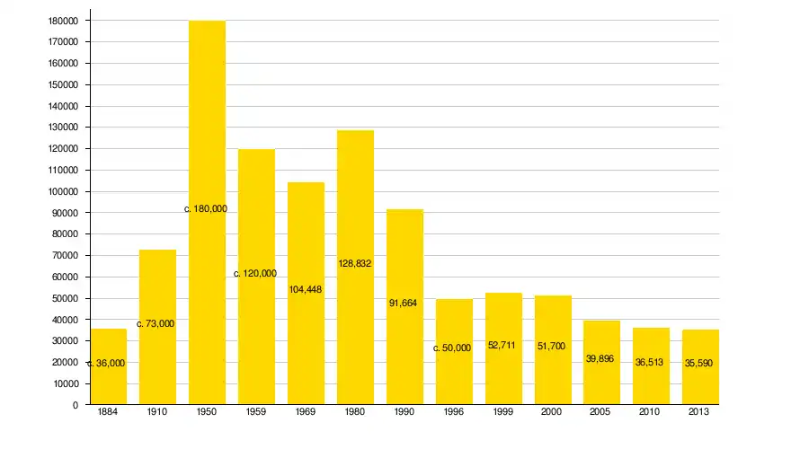 Population - Total - Catholics | (as of 2015) 540,000[1] 34,361[1] (6.4%) |