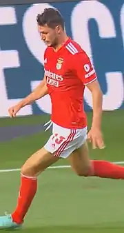 On 31 July 2021, Benfica announced the signing of Yaremchuk on a five-year deal worth €18.5 million for 75% of his economic rights.[14][15][16] He made his debut on 10 August, creating Benfica's second goal in the 2–0 home victory over Spartak Moscow in the third qualifying round of the UEFA Champions League.[17] Four days later, he made his debut in the Primeira Liga, scoring in a 2–0 home victory over Arouca,[18] and netted a brace in a 3–1 away victory over Vitória de Guimarães.[19] The following matches, Yaremchuk struggled to score goals, being 10 matches scoreless, before scoring his first goal in over three months, the opening goal for Benfica in a 2–0 home victory over his former club Dynamo Kyiv in the club's last UEFA Champions League group match, ensuring his teams' qualification to the round of sixteen.[20][21]