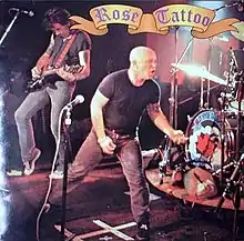 Rose Tattoo formed in Sydney in 1976 by Pete Wells who wanted a tough slide guitar based band. They recorded their debut single, "Bad Boy for Love" with Angry Anderson on lead vocals, Mick Cocks on rhythm guitar, Ian Rilen on bass guitar, Dallas "Digger" Royall on drums and Peter Wells on slide guitar during mid-1977.[1][2] Rilen, the song's writer departed to form punk rock group, X, prior to its release in October 1977.[3][4] The single was produced by Vanda & Young (ex-The Easybeats, AC/DC's producers) and peaked at No. 19 on the Australian Kent Music Report Singles Chart.[1][5] To cover Rilen's departure, Cocks switched to bass guitar, then Chris Turner (ex-Buffalo) was brought in.[1]