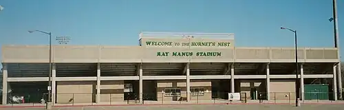 Roswell's coach with the best record is Ray Manus, who was head coach for 23 seasons (1975–97).[88] and had a record of 141–102–1.[78] After retiring as head coach, Coach Manus returned to the team as an assistant in 2004, and the stadium was officially named after him that year as well. Though he never won a state title as head coach, Manus was on the coaching staff for all three titles.