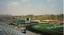 The current campus is the third that Roswell High School has occupied. It opened in the fall of 1990 on King Road, just off of Highway 92, with an enrollment of nearly 2,000 students. It is the oldest high school building in North Fulton.[5] The new campus was expanded with a football stadium and softball field added in 1994 and an auditorium in 1995, paid for by the RHS Foundation. The campus includes science, computer, video, and cosmetology labs; baseball and softball fields, a stadium for football and soccer, a lacrosse field, an additional practice field, a dome style gymnasium, a cross country trail, and lighted tennis courts for athletics.
