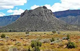Round Mountain[2] is a small 6,185-foot (1,885 m) summit made of gray hornblende plagioclase trachyte in the Castle Valley in southeastern Grand County, Utah, United States, about 10 miles (16 km) east-northeast of Moab. Round Mountain is an extinct bysmalith, or igneous volcanic plug, that rises 700 feet (210 m) above the middle of the valley floor. Precipitation runoff from the mountain drains into Castle Creek, which is a tributary of the Colorado River. The nearest higher peak is Castleton Tower, 1.42 miles (2.29 km) to the southwest.[1]
