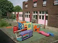 On the other side of the hill there is a basketball court. It was originally the children's playground then known as the Gymnasium. Between this and the fence is the storage area for compost, the recycling station.[3][4] There also used to be a putting green.