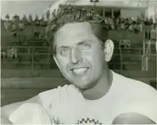 ![]() A photo of Roy Tyner in a white T-shirt posing in front of the grandstand of an American speedway. | |||||||