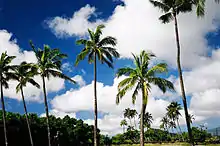 The Royal Coconut Coast is the designation given to Kauai’s east side, defined as the area between the Wailua Golf Course, heading north along the coast to Kealia Beach, and extending inland toward the center of the island, to Mount Waialeale. The Royal Coconut Coast includes the sacred Wailua River area and the large towns of Wailua and Kapaa. The area's name derives from the acres of coconut trees along the coast and highway. It also has many places of historical and cultural significance. Some of the land is held as sacred and was once reserved for the royalty of Hawaii.