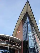 The RNLI's main base is in Poole, Dorset, adjacent to Holes Bay in Poole Harbour. It includes RNLI HQ, lifeboat maintenance and repair facilities, the Lifeboat Support Centre and RNLI College (the training centre). The support centre and college were opened by Queen Elizabeth II in 2004.[87] Specialist training facilities include a wave and capsize pool, a fire simulator, a ship's bridge simulator and an engineering workshop. The College's accommodation is available for RNLI members and their guests when training is not taking place and offers facilities for weddings, conferences and other events.[88] About half of the RNLI's staff work at Poole. Other locations are Dublin, London, Perth, Saltash, St Asaph and Stockton-on-Tees, while some roles are at lifeboat stations or home-based and include operations, estate and financial management, public relations and information technology.[89] A new headquarters for RNLI Ireland was opened at Airside in Swords, County Dublin, in June 2006 by President Mary McAleese, attended by the then Chairman of the Executive Committee of the RNLI, Admiral Sir Jock Slater, RN.[90]
