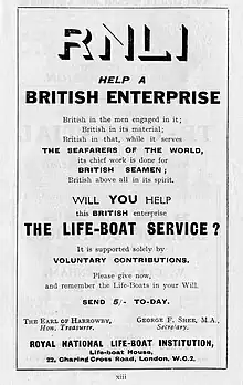 - ↑ "alamy: lifeboat collection box". alamy.com. Retrieved 19 April 2016.