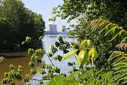 Harrisburg, the state capital, is eleven miles to the northwest (upriver).