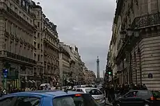 The rue de la Paix (English: Peace Street) (French pronunciation: [ʁy də la pɛ]) is a fashionable shopping street in the center of Paris. Located in the 2nd arrondissement of Paris, running north from Place Vendôme and ending at the Opéra Garnier, it is best known for its jewellers, such as the shop opened by Cartier in 1898.[1] Charles Frederick Worth was the first to open a couture house in the rue de la Paix. Many buildings on the street are inspired in design by the hôtels particuliers of Place Vendôme.