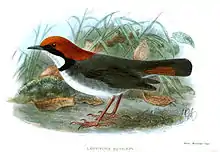 The rufous-headed robin (Larvivora ruficeps) is a species of passerine bird in the family Muscicapidae. It is found in central China. Its natural habitats are temperate forests and temperate shrubland. This poorly known species is thought to be threatened by habitat loss.