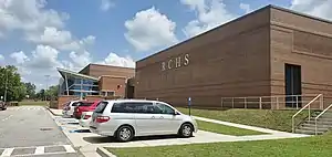 Russell County High School (RCHS) is a rural Title I public high school located in Seale, Alabama offering grades 9 through 12. The school enrolls 1,050 students in total (as of the 2023–2024 school year)[1][2] and is the only high school in the Russell County School District. The school claims that it is a diverse institution. The student body consists of 43% caucasian, 47% African American, and 10% other ethnicities.[2] RCHS proceeds Russell County Middle School, also the only middle school in the school district. There are five elementary schools surrounding RCHS; those schools are Dixie Elementary, Ladonia Elementary, Mount Olive Intermediate, Mount Olive Primary, and Oliver Elementary.[3][4][5]