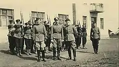 The Russian National People's Army, as it was called by its leaders, was known by several names during its existence. Though their chevrons and officially-produced material referred to them as such, German documents referred to them by two alternatively-used names; Sonderverband Graukopf ("Special Group Grey Head") and Russisches Bataillon z.b.V. (Special-Purpose Russian Battalion).[1][2]
