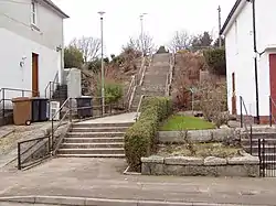 The 1867 OS map shows a rural area with a single track line and the station on the north side of the line with a very short platform and a single building.[4] By 1900 the track here had been doubled and the station consisted of two platforms with a stationmaster's house, a small station building on the northern side of the line and a simple wooden shelter on the southern side with the two connected by a pedestrian bridge. Signals were present but no signalbox is indicated.[5] By 1953 the line was singled[3] with the westbound or southern track lifted. The station buildings had been demolished apart from the stationmaster's house.[6]