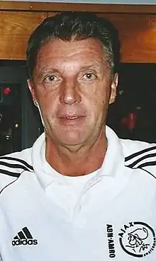 Rudolf ("Ruud" or "Rudi") Jozef Krol (Dutch pronunciation: [ˈkrɔl]; born 24 March 1949) is a Dutch former professional footballer who was capped 83 times for the Netherlands national team. Most of his career he played for his home town club, Ajax, and he became a coach after retirement.[5] Regarded as one of the best defenders of all time, Krol mainly played as a sweeper or left-back, however he could play anywhere across the back line, or in midfield as a defensive midfielder, due to his range of passing with both feet, temperament, tactical intelligence, and ability to start attacking plays after winning back the ball.[6][7]