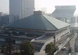 ![]() Ryōgoku Kokugikan, view from the West with the Edo-Tokyo Museum in the background | |