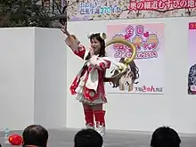In May 2009, the temple installed an illustrated signboard featuring Buddhist and Shinto deities as anime characters, prompting the popular name Moe-ji (萌え寺).[2] In order to provide a cheerful atmosphere for visitors, the enshrined Shingo Benzaiten (新護弁財天), an eccentric, stylized form of the goddess, is presented through various forms of music and entertainment. The temple abbot was introduced to voice actress and illustrator Toromi, who went on to play the role of Benzaiten in cosplay, taking on the persona "Toro Benten."[3]