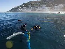 Local divers found the wreck off of Clifton beach in the 1980s but misidentified it as a Dutch merchant ship. Several items from the ship, including bolts, cannon balls and cannons were removed by treasure hunters.[8] Discoveries in archives in South Africa and Portugal, as well as tests of artifacts confirmed in 2015 that the ship was the São José slave ship. On June 3, 2015, along with the formal announcement of the find, a memorial service was held for the lost. Three divers from South Africa, the United States, and Mozambique scattered soil from the slaves' homeland in the surf not far from the wreck. Artifacts from the dive site were displayed at the South Africa's Iziko Museum's Slave Lodge in June 2015, and undergo conservation efforts there, with additional research and recovery continuing.[9] Some artifacts were loaned for display at the United States' African American History Museum, when it opened in 2016.[10][11][12][13] Connected with the 2015 anniversary of the abolition of slavery in South Africa and the work on the Sao Jose, the Iziko launched a new website exhibition, Slavery in South Africa.[14]