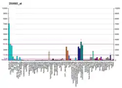 Its high expression has been found in many tissues including lung, pancreas, heart, placenta, kidney, and low levels in skeletal muscle, liver, and brain tissue.[8]