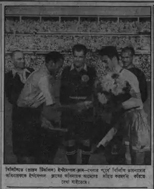- ↑ PTI (27 July 1953). "E. Bengal Soccer Team Leaves Today For Bucharest". The Indian Express. Archived from the original on 28 September 2021. Retrieved 28 September 2021.