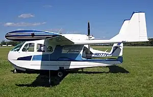 The Riviera is somewhat similar to the famous Republic Seabee of the 1940s. The major difference between the Riviera and the Seabee is the use of a high twin-boom tail arrangement on the Riviera while the Seabee uses a single conventional tail. The Riviera uses a tricycle landing gear, with the nose gear retracting into the nose and concealed behind two small nose gear doors. As a result, forward visibility is somewhat better in the Riviera than in the Seabee when taxiing or taking off on land.