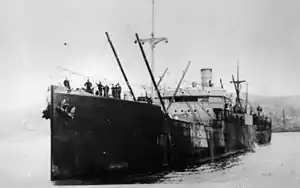 SS Waihora was a 4,638-ton cargo steamship built by Swan Hunter & Wigham Richardson, Tyne in 1907 for the Union Steam Ship Company of New Zealand.[2] During the First World War she was chartered by the Royal Australian Navy and took part in operations against the German colonies in the Pacific with the Australian Naval and Military Expeditionary Force and later used by New Zealand as a troop transport as His Majesty’s New Zealand Transport. She was sold in 1927 to Naigai Kisen and renamed Tairyu Maru.