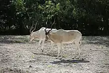 The Sahara is largely undisturbed.[1] The most degradation is found in areas where there is water, such as aquifer oases or along the desert margins where some rain usually falls most years. In these areas, animals such as addaxes, scimitar-horned oryxes, and bustards are over-hunted for their meat. Only one area of conservation is recorded in the Sahara: the Zellaf Nature Reserve in Libya.[1]