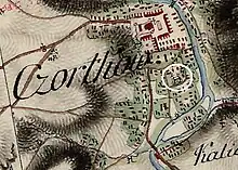 ![]() Church on the map by Friedrich von Mieg (1782) | |