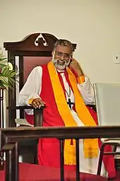 Afterwards, bishop Jacob, along with other Anglican bishops and senior presbyters of the uniting denominations, vested all new candidates to bishoprics with episcopal ordinations.[108][110][14] By 1965, eighty-five percent of CSI clergy were episcopally ordained.[111]
