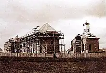 At the beginning of 1932, both wings of the church were completed, one of them established as a school for boys. At the end of 1933, the walls of the rotunda were erected, in 1935 the reinforced concrete dome was set. At the end of 1938, the church was roughly finished. The outbreak of WWII required a swift completion of the dome covered with a roof, with an internal staircase connecting the Assembly House with the church.