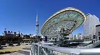 Also, inside Hisaya-odori Park is the 180-meter Nagoya TV Tower, built in 1954, which is often mentioned as a symbol of Nagoya.[1] At night, the tower is lit and can be seen all over Sakae.[2] Adjacent to the tower is a large facility called Oasis 21, which has restaurants, stores, and a bus terminal.[3] Adjacent to Oasis 21 is the major cultural facility Aichi Fine Arts Center, which contains facilities such as Aichi Fine Art Museum and Aichi Performing Arts Theater.