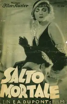 Salto Mortale is a 1931 German drama film directed by Ewald André Dupont and starring Anna Sten, Anton Walbrook and Reinhold Bernt. A circus film, it has been described as being "in all but name a sound film remake of Variety" and was a box office success.[1]