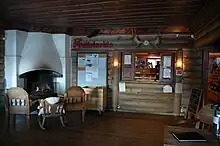 The main building houses a restaurant which serves food all day and has a three-course menu in the evening. There is also a small shop with all sorts of sweets, newspapers, beer, Sami handcrafts and more. In the Nåiden service building may be found sauna facilities, showers, drying rooms and a self-serve kitchen. There is also a rental department where one may rent everything anything needed for the mountain. Saltoluokta organizes guided tours and courses with everything from dog sledding to a boatrides to The Great Falls.