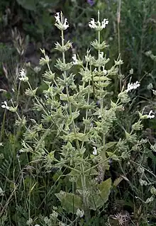 Salvia macrosiphon is a species of flowering plant in the family Lamiaceae.[1][2] It is native to Iraq, Iran, Pakistan, Afghanistan, Transcaucasia, and Turkey, where it grows at the edges of fields. It is a perennial herb with a white corolla and ovate nutlets. It flowers in May and fruits from June onwards. Although the plant is similar to S. spinosa, it differs in that it has narrower leaves and calyces, is less indurate and has less spiny fruiting calyces, and possesses a longer corolla tube.[3]