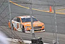 He returned to the Nationwide Series full-time for Penske in 2013 to drive the No. 12, now a Ford Mustang after Penske changed manufacturers. Hornish's 2013 season was his best to date, with 16 top-five and 25 top-ten finishes.[134] At the season-opening DRIVE4COPD 300 at Daytona International Speedway, Hornish started and finished second despite his involvement in a serious crash on the final lap. Since race winner Tony Stewart was only eligible to score points for the Sprint Cup Series, Hornish was the series points leader after the Daytona race.[135] At the Sam's Town 300 at Las Vegas Motor Speedway, he led for 114 laps in his second Nationwide victory.[136] Before the season-ending Ford EcoBoost 300 at Homestead-Miami Speedway Hornish was second in points, eight behind Austin Dillon. Hornish qualified in the pole position and led for 37 laps, finishing eighth; Dillon, who finished twelfth, won the series championship.[137] Hornish was second in the final point standings, with 1,177.[138] During the season, car owner Roger Penske said that Hornish (who had driven for the team since 2004) would be released due to a lack of sponsorship.[139][140] Hornish planned to drive Penske's No. 12 in the Sprint Cup Series at Kansas and Talladega. At Kansas he started in fourth place, running as high as third before crashing on lap 183 due to winds.[141][142] The qualifier was rained out at Talladega, and Hornish failed to qualify because he had only one other Cup start that season.[143]