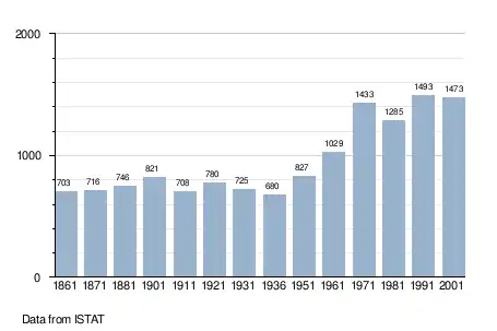 - ↑ "Popolazione Residente al 1° Gennaio 2018". Italian National Institute of Statistics. Archived from the original on 30 June 2019. Retrieved 16 March 2019.