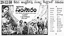 Samsaram (transl. Family) is a 1950 Indian Telugu-language drama film directed by L. V. Prasad. It stars N. T. Rama Rao, Akkineni Nageswara Rao and Lakshmirajyam, with music composed by Susarla Dakshinamurthi.[1] It was produced by K. V. Krishna and C. V. Ranganatha Rao under the Sadhana Productions banner. The film was recorded as a Blockbuster at the box office. The film was later remade in Tamil with the same name, in Hindi as Sansar and in Malayalam as Ayodhya (1975).[2]