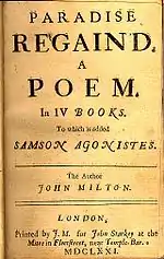 - ↑ Milton, John (1671). Paradise Regained; A Poem in IV Books; To Which is Added Samson Agonistes (II ed.). London: John Starkey at the Mittre in Fleetstreet, near Temple Bar. Retrieved 9 October 2023 – via Google Books.