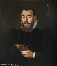 Born in Suffolk, he was a son of John Ward, minister of Haverhill, and his wife, Susan. Nathaniel Ward was his younger brother. Another brother, John, was rector of St. Clement's, Ipswich. On the nomination of Lord Burghley, Samuel was admitted a scholar of St. John's College, Cambridge on 6 November 1594 – a college established in 1511 thanks to a foundation from Lady Margaret Beaufort. He graduated with a BA in 1596–7, was appointed one of the first fellows of Sidney Sussex College, Cambridge in 1599, and commenced there with an MA in 1600.[1] Having finished his studies at the university, he became a lecturer at Haverhill, where he was a successful evangelical and became the 'spiritual father' of Samuel Fairclough.