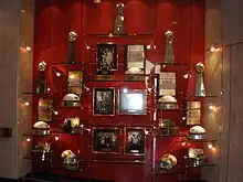 49ers wall of trophies at the Marie P. DeBartolo Sports Center